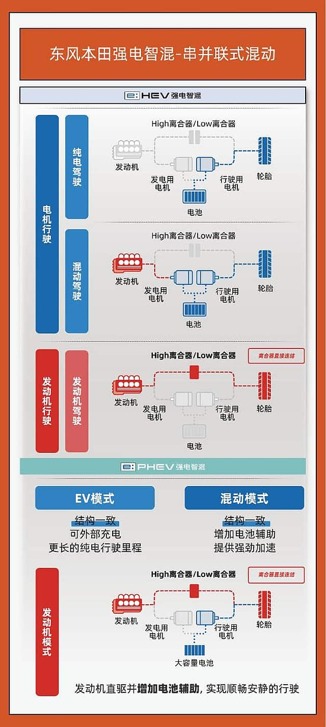 • 三大模式:EV 纯电 → 混动串联 → 发动机直驱本田中国